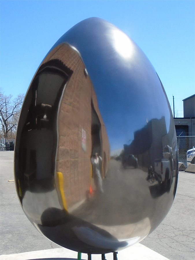 Two years ago we completed a very unique project for The Culinary Institute of America, The Egg. This was a 9 ft fiberglass egg that we coated in our Polished White Bronze MakeItMetal Veneer finish. It is currently standing outside The Culinary Institute of America in New York.